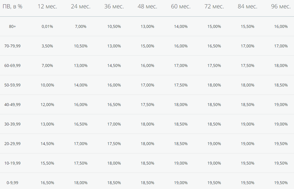 - При сроке 24 месяца: ставка 0,01% годовых при первоначальном взносе от 80%.