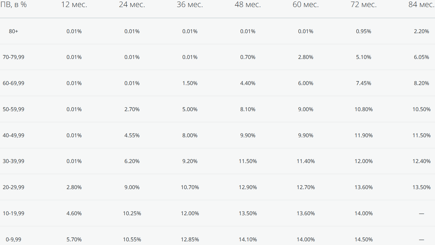 - При сроке 48 месяцев: ставка 0,01% годовых при первоначальном взносе от 70%.